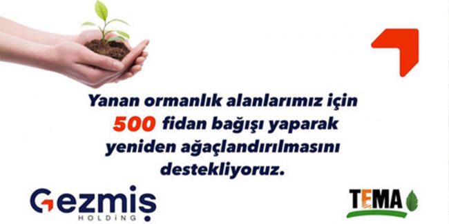 Biliyoruz yanan geri gelmiyor. Ciğerlerimiz yanıyor, canlılar yanıyor. Ancak elimizden yeniden ağaçlandırmak ve canlılar için yaşam alanlarını yeniden kurmak gelebilir. Bunun için TEMA Vakfı’nın başlattığı kampanyaya GEZMİŞ HOLDİNG olarak, her bir çalışma arkadaşımız adına 500 fidan bağışlayarak katkı sağladık. Haydi Türkiye sen de katıl bu kampanyaya. Bir an önce yanan alanlarımızı yeniden yeşil görmek dileklerimizle🙏